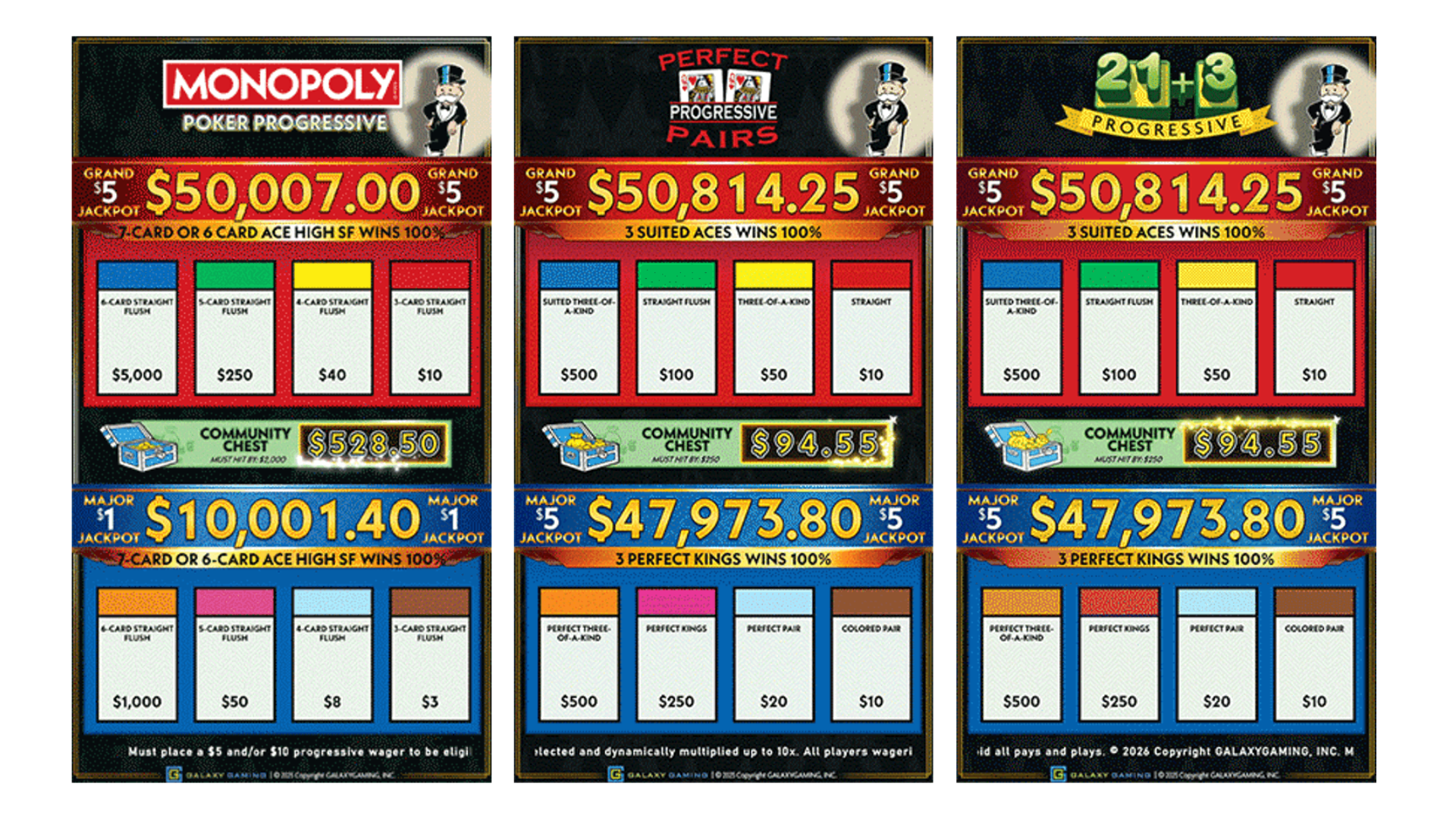 Designed to deliver high energy and volatility without compromising house edge, the MONOPOLY Table Games Progressive is unlike anything the industry has seen. With nostalgic animations and familiar visuals, this theme adds a fresh layer of excitement to the table—and best of all, it’s compatible with nearly any Galaxy Gaming progressive.